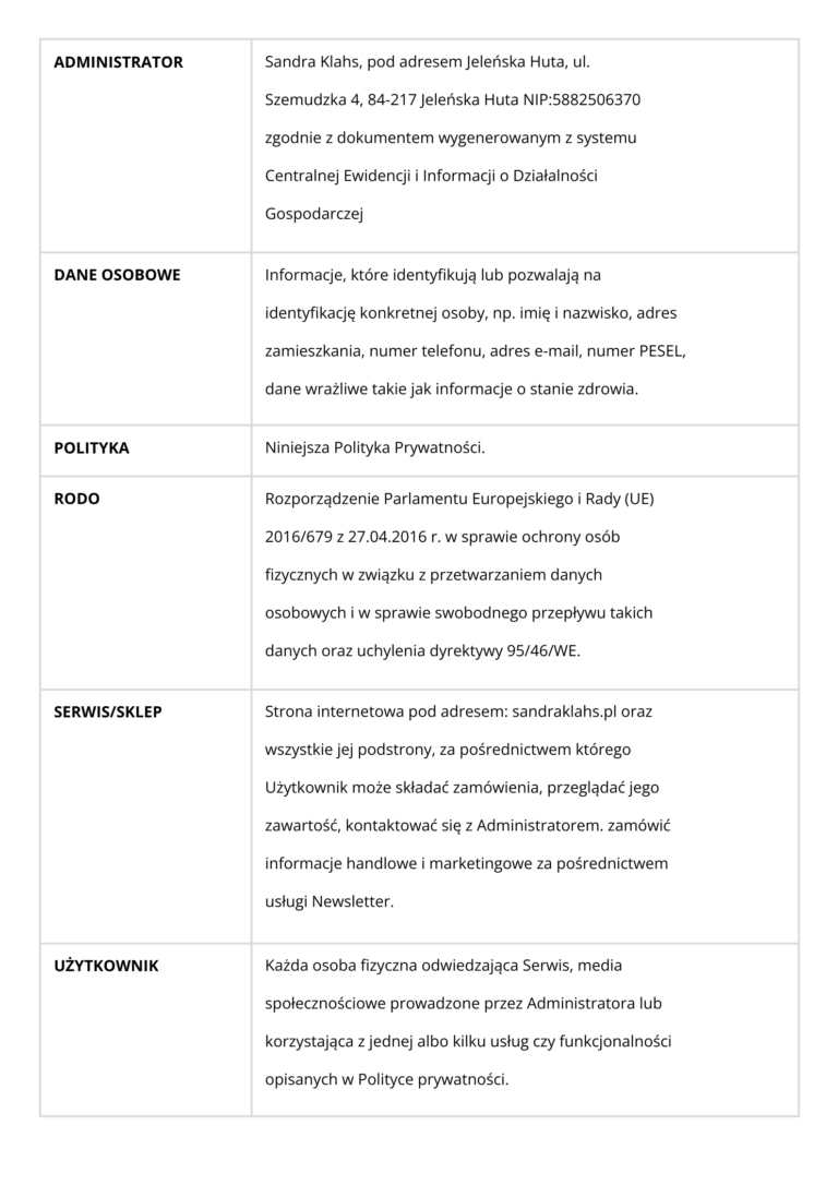 2. Kontakt z Administratorem jest możliwy pod ww. adresem oraz adresem e-mail: sandrakwidz@gmail.com oraz pod numerem telefonu: + 48 693586331.